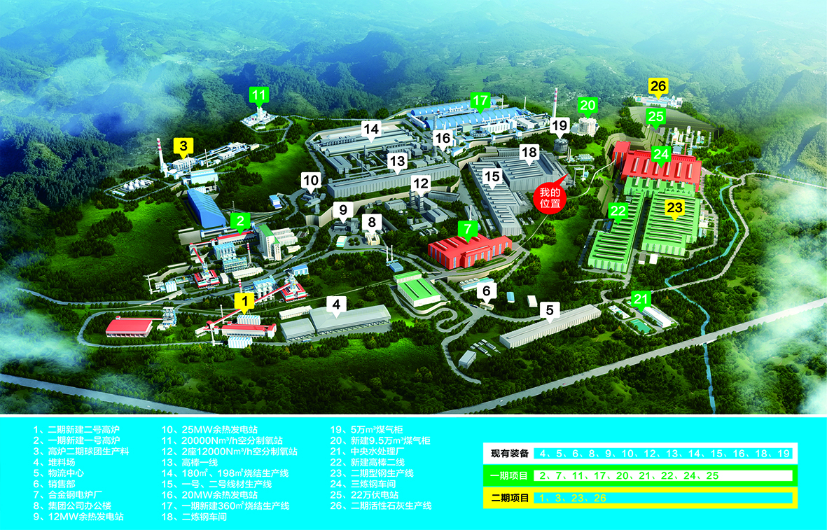 建成360m2燒結生產線;建成1350m3煉鐵高爐
